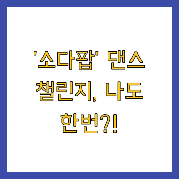 '소다팝'의 인기에 힘입어 댄스 챌린지도 엄청 유행하고 있다는 사실, 알고 계셨나요?! 💃🕺 신나는 리듬에 맞춰 나만의 '소다팝' 댄스를 만들어보는 건 어때요?! 친구들과 함께 챌린지에 참여해서 즐거운 추억을 만들어보세요! 틱톡이나 인스타그램 릴스에 공유하면 '좋아요' 폭탄을 받을지도 몰라요! 😉